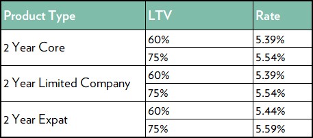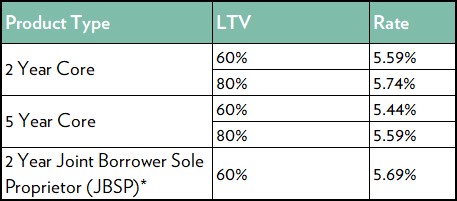 Our 2 Year Fixed Rate product for 60% LTV has decreased by 0.05%. Additionally we've launched new 2 Year and 5 Year Fixed Rate products up to 80% LTV with no maximum loan size.